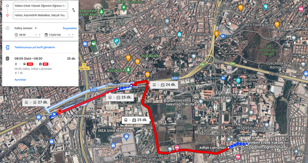 Yaşar Üniversitesi öğrencileri, kurumumuzdan Yaşar Üniversitesi Yerleşkesine Otobüs + Metro kullanarak yaklaşık 25 dakikada ulaşabilirler.